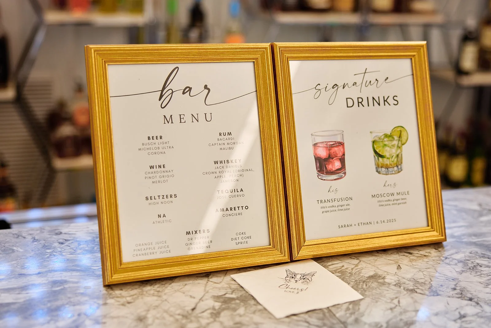 DIY touches like signage, table numbers, or photo displays add personality and save money. Plus, at our venue, we have mirrors that you can Cricut your name right onto and save money!